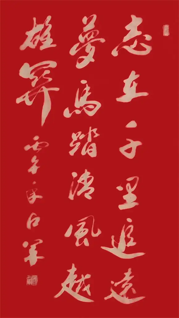 文化兴邦 一马当先——蜡书发明人吴占军先生蜡书“马上”系列书法贺岁