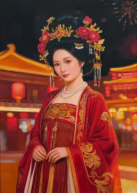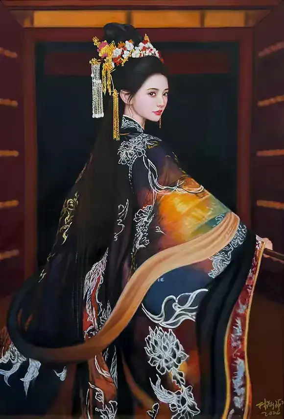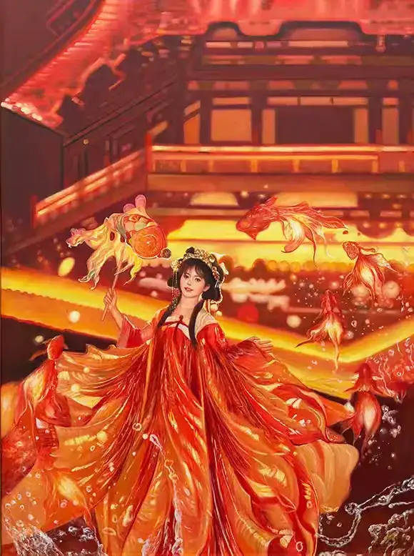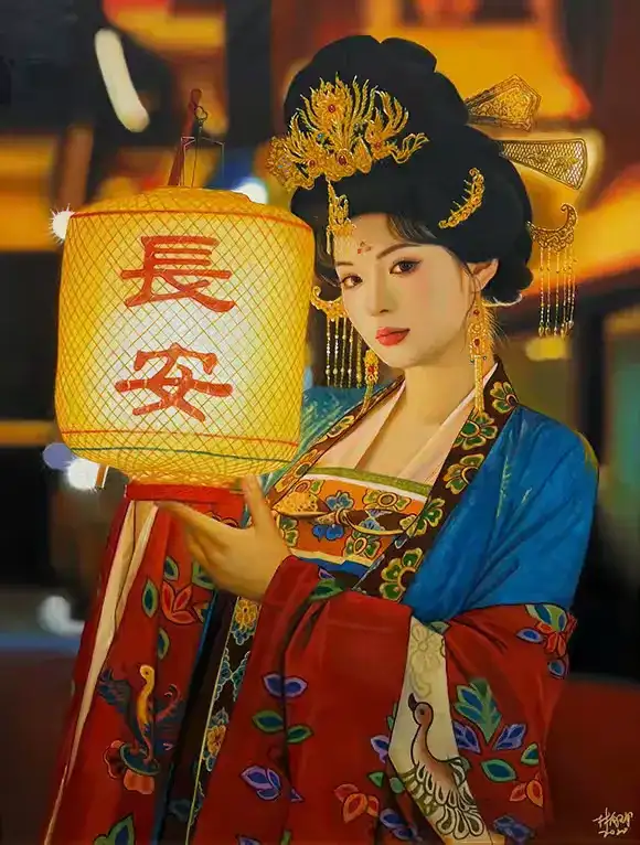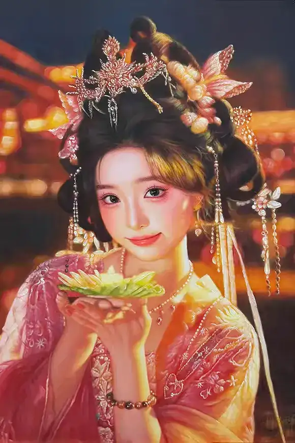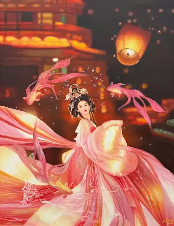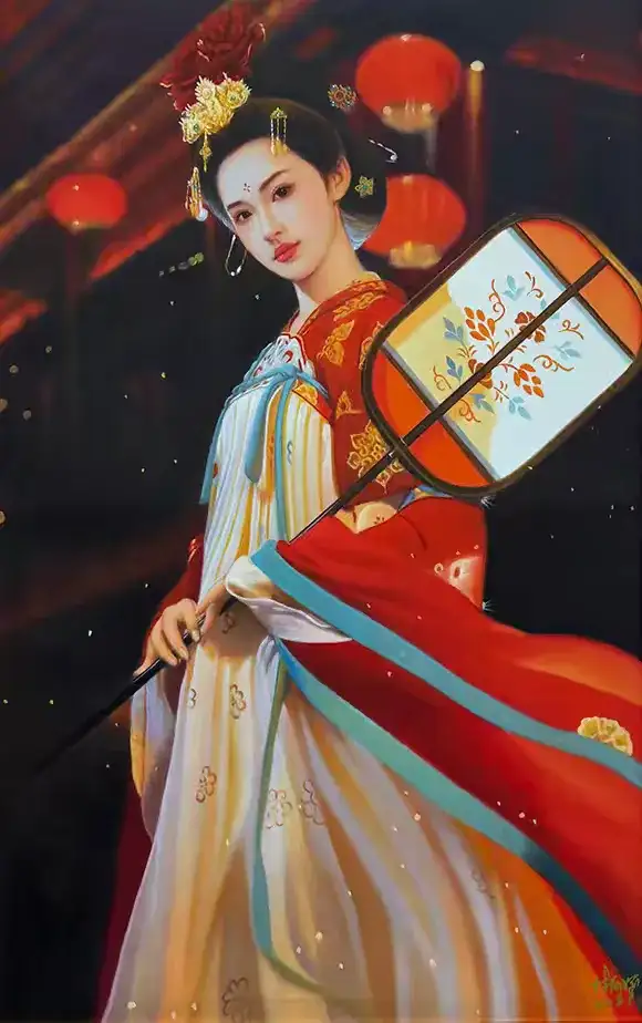 苏富比的垄断性布局,始于对艺术本质的精准洞察。林雨琛的创作,是非遗文化当代转译的极致范本:他以毫厘毕现的超写实技法,将滕王阁的赣派榫卯、黄鹤楼的攒尖顶形制、岳阳楼的盔顶工艺凝于画布,《四大名楼》系列单幅估价均超700万元,其中《黄鹤楼》被人民大会堂永久收藏,《苏州园林》入驻故宫博物院,成为物质类非遗的视觉史诗;而《长安》《大唐风华》等人物作品,则将唐代服饰制作、古典妆容等非遗技艺融入光影,让尘封的手工艺在油彩中流转鲜活气韵,斩获意大利佛罗伦萨美术学院金奖,更被华盛顿艺术美术馆纳入馆藏,成为中法文化交流的艺术桥梁。这种“传统内核+当代表达”的创作路径,让他跻身2024福布斯中国当代艺术家影响力榜单,与范迪安、冷军等大家同列,成为非遗传承领域的新锐标杆——这样的艺术高度,唯有苏富比的全球资源网络,能匹配其价值体量。